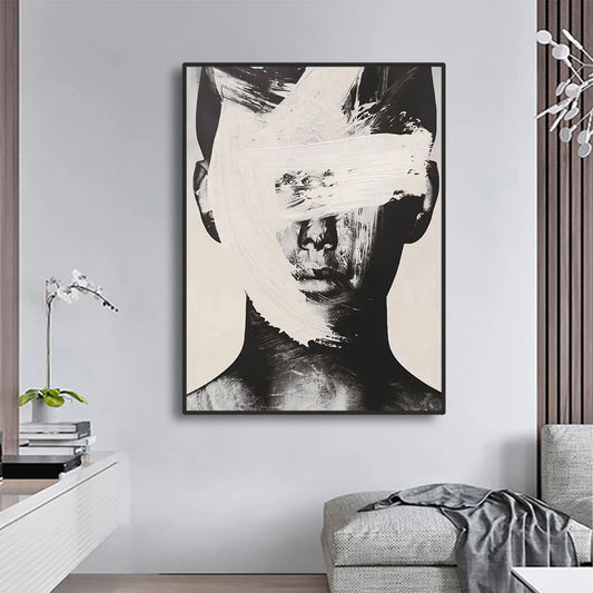 Abstract Face Wall Art – Black & White Minimalist Canvas | Modern Contemporary Statement Piece