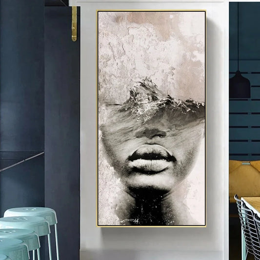 Abstract Textured Face Wall Art – Modern Luxury Canvas Painting | Minimalist Statement Portrait