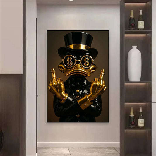 Golden Rebel Duck – Luxury Urban Pop Art Canvas