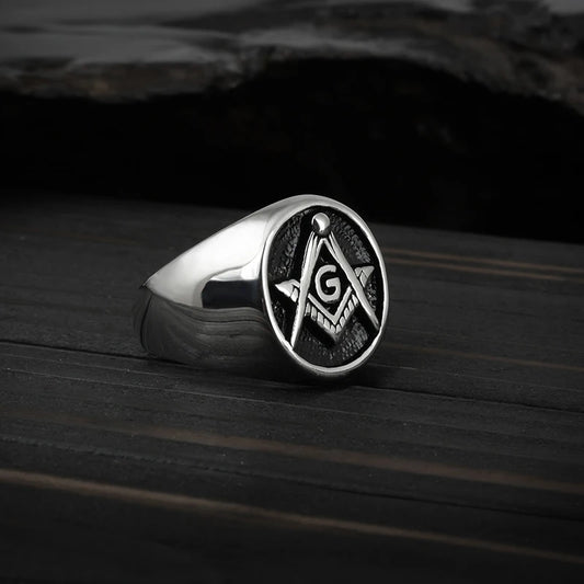 Masonic Stainless Steel Ring – Symbolic Freemason Statement Jewelry